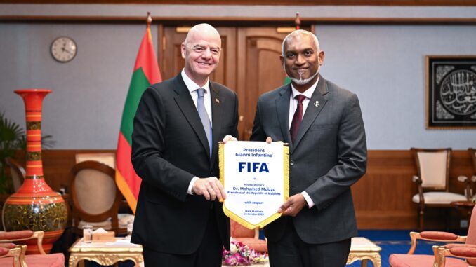 އިންޓަނޭޝަނަލް ފެޑެރޭޝަން އޮފް އެސޯސިއޭޝަން ފުޓްބޯލް ( ފީފާ ) ގެ ރައީސް ޖިއަނީ އިންފަންޓީނޯ، ރައީސުލްޖްމްހޫރިއްޔާ ޑޮކްޓަރ މުޙައްމަދު މުޢިއްޒުގެ އަރިހަށް އިހުތިރާމުގެ ޒިޔާރަތެއް ކުރައްވައިފިއެވެ.