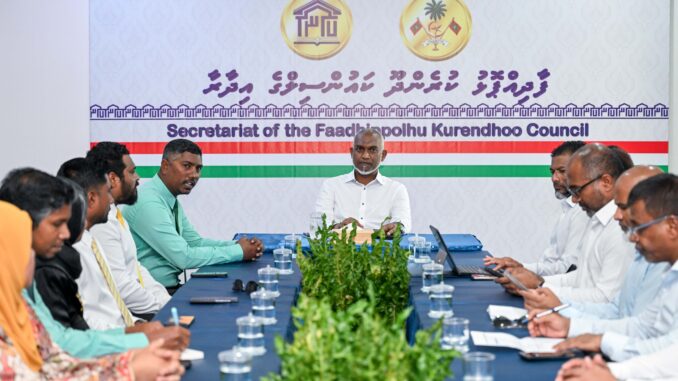 ރައީސުލްޖުމްހޫރިއްޔާ ޑޮކްޓަރ މުޙައްމަދު މުޢިއްޒު، ފާދިއްޕޮޅު ކުރެންދޫ ކައުންސިލާއި، އ.ތ.މ. ކޮމިޓީ އަދި ރަށުގެ ބައެއް މުއައްސަސާތަކުގެ އިސްވެރިންނާ ބައްދަލުކުރައްވައި ރައްޔިތުންނަށް އެންމެ މުހިންމު ކަންކަމާ ގުޅޭގޮތުން މަޝްވަރާކުރައްވައިފިއެވެ.