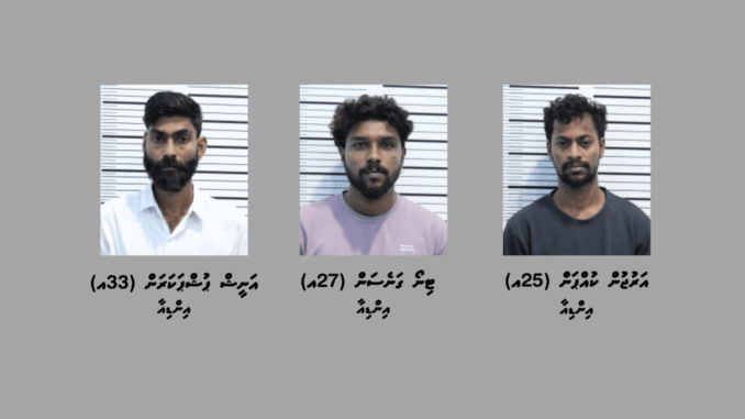 މި މައްސަލައާ ގުޅިގެން ހައްޔަރުކޮށްފައިވަނީ ޓިނޯ ގަނެސަން (27އ) އާއި އަރުޖުން ކުއްޕަން (25އ) އަދި އަނީޝް ޕުޝްޕަކަރަން (33އ) އެވެ. މި ތިން މީހުންނަކީވެސް އިންޑިއާ ރައްޔިތުންނެވެ. މި ތިން މީހުންވެސް ހައްޔަރުކޮށްފައިވަނީ މި ޑިސެންބަރު މަހުގެ 15 ވަނަ ދުވަހު ހިންގި އޮޕަރޭޝަނުގައެވެ.
