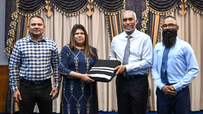 އަތްތެރިމަސައްކަތުގެ ފަންނުވެރި އާމިނަތު ގުމޭރިއާ އަމިއްލަ އަތުން ވިޔެ ތައްޔާރުކޮށްފައިވާ ދިވެހި ފޭއްޔެއް ރައީސުލްޖުމްހޫރިއްޔާ ޑޮކްޓަރ މުޙައްމަދު މުޢިއްޒު އަށް ހަދިޔާކުރައްވައިފިއެވެ.