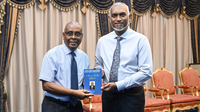 މި ފޮތް ރައީސުލްޖުމްހޫރިއްޔާއަށް ހަދިޔާ ކުރެއްވުމަށް މިއަދު ހެނދުނު ރައީސުލްޖުމްހޫރިއްޔާގެ އޮފީހުގައި ބޭއްވެވި ބައްދަލުކުރެއްވުމުގައި، ރައީސުލްޖުމްހޫރިއްޔާ ވަނީ މި ފޮތް އިފުތިތާހުކޮށްދެއްވާފައެވެ.