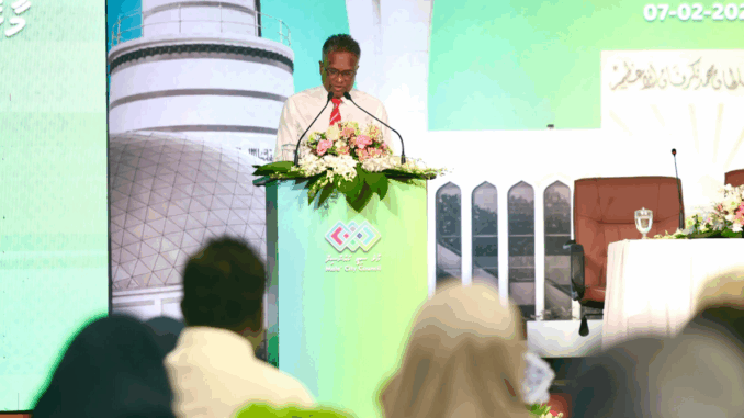 މޭޔަރ އާދަމް ޢާޒިމް މިހެން ވިދާޅުވީ މާލެ ސިޓީ ކައުންސިލް ހޯލުގައި މިރޭ ކުރިއަށްދިޔަ 2026 ވަނަ އަހަރުގެ ފުރަތަމަ ރައްޔިތުންގެ ބައްދަލުވުމުގައި ވާހަކަފުޅު ދައްކަވަމުންނެވެ.