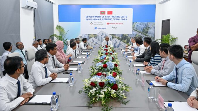 ރައީސުލްޖުމްހޫރިއްޔާ ޑޮކްޓަރ މުޙައްމަދު މުޢިއްޒު، ޗައިނާ މެޝީނަރީ އިންޖިނޭރިންގް ކޯޕަރޭޝަން (ސީ.އެމް.އީ.ސީ)ގެ ހުޅުމާލޭ ފޭސް 2ގެ ސައިޓަށް ޒިޔާރަތްކުރައްވައި، "އެފޯޑަބަލް ހައުސިންގ" މަޝްރޫޢުގެ ފެށުމަށް ވެފައިވާ ތައްޔާރީތައް ބައްލަވާލައްވައިފިއެވެ.